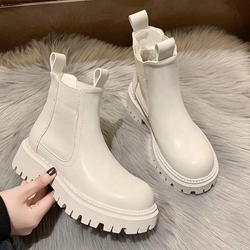 秋冬チェルシーブーツレディースプラットフォームベージュホワイトアンクルブーツ女性用ファーショートチャンキーパンクゴシックシューズ
