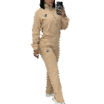 Conjunto de dos piezas para deportes al aire libre Y71613 para Mujeres Europeas americanas, bordado en relieve, cremallera roscada, venta al por mayor, Invierno transfronterizo