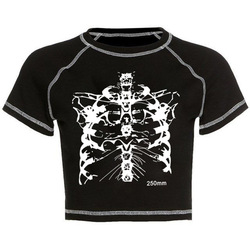 Kawaii gráfico cuello redondo Crop Tops Vintage Slim camisetas de manga corta con patrón sólido Stitch verde letra impresión ropa camiseta